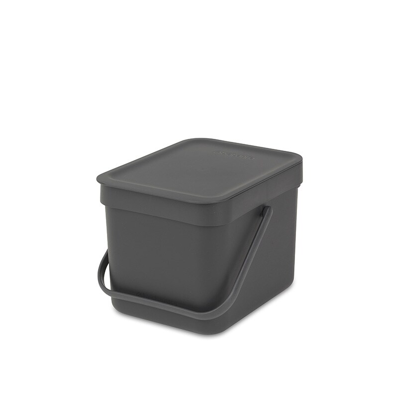 Brabantia Abfallsammler mit Stay-open Deckel | 6 Liter, HxBxT 18x20x24,5cm | Kunststoff | Dunkelgrau