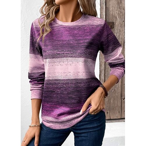 Per donna Maglietta Ombre Grafico Geometrico Moda Elegante Classico Manica Lunga Girocollo Top Regolari Quotidiano Weekend Stampato Viola Marrone Verde Estate Primavera Autunno