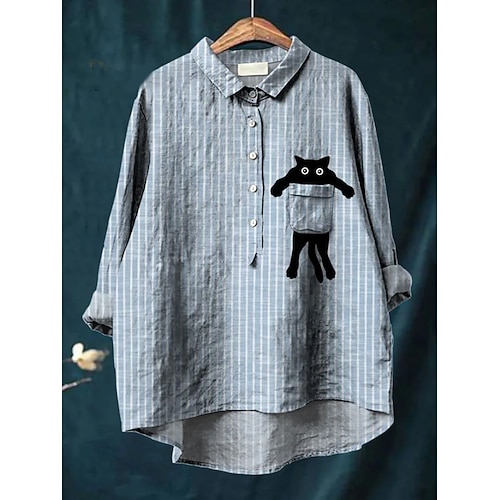 Per donna Blusa Grafico Geometrico Attivo Quotidiano Manica Lunga Colletto a Camicia Top Regolari Quotidiano Bottoni Blu Estate Primavera