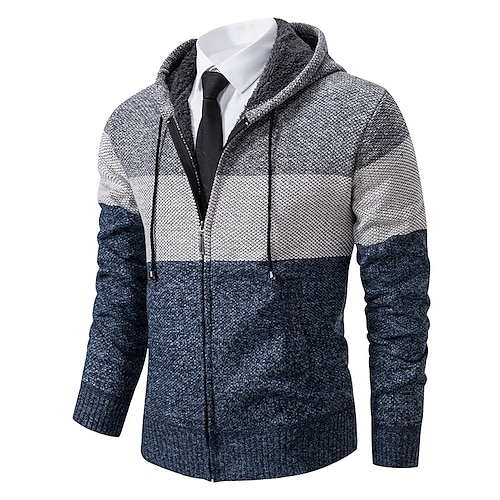 Per uomo Felpa Maglione elegante Cardigan Maglione con Zip Maglione a maglia A Coste Maglia Top Regolari Blocco di colore Lavorato a maglia Semplice Con Cappuccio Moda Scialli Affari Casuale