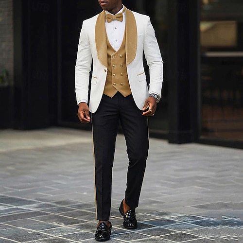 Uomo Balli di fine anno Matrimonio Abiti da festa Bavero sciallato Rosa Borgogna Moda Casual Patchwork Vestibilità aderente 3 pezzi Monopetto a un bottone