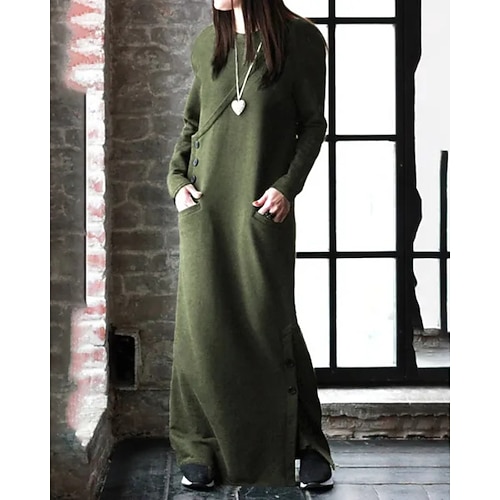 Per donna Abito Lungo Maxi Abito Abito con Cappuccio Abito Felpa Moderno Vacanza Uscire Vestibilità regolare Semplice Manica Lunga Girocollo Nero Vino Verde militare Arancione Autunno Inverno