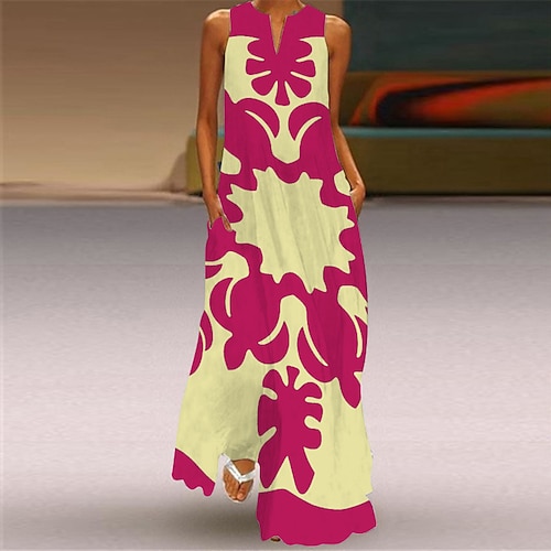 Per donna Abito Lungo Maxi Abito Vestito Casual Vestito a ruota Abito Estivo Abito Sottoveste Elegante Moda Moderno Quotidiano Spiaggia Weekend Vestibilità regolare Fiore Senza Maniche Girocollo