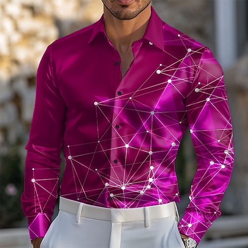 Per uomo Stampa galassia stellata Camicia Camicia in raso Camicia elegante Manica Lunga Moda Casual Vacanza Abbigliamento Quotidiano Estate Primavera Autunno Collo ripiegato Stampa 3D Camicie con