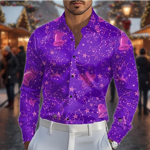 Natale Per uomo Stampa Floreale Palline di Natale Camicia Camicia in raso Camicia elegante Manica Lunga Moda Casual All'aperto Ferie Primavera Autunno Collo ripiegato Stampa 3D Camicie con bottoni