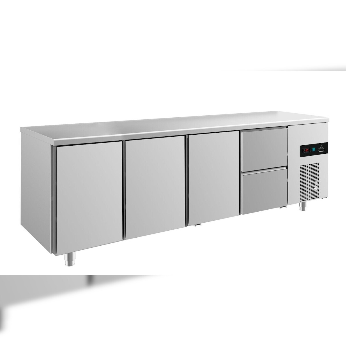 Gastro Kühltisch 3 Türen 2 Schubladen Umluftkühlung 2330x700x850mm -2/+8°C