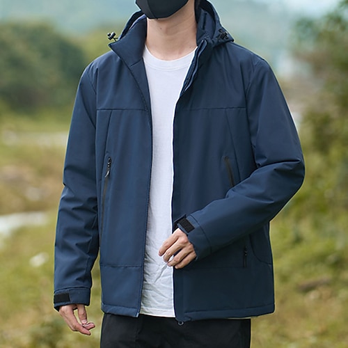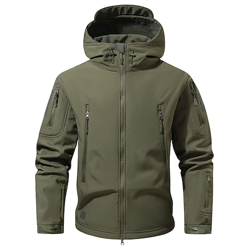 Per uomo Giacca da Esterno Giacca softshell Giacca di transizione Giacca con Cappuccio Allenamento All'aperto Impermeabile Antivento Tasca Coulisse Primavera Autunno Tinta unica Casual Stile militare