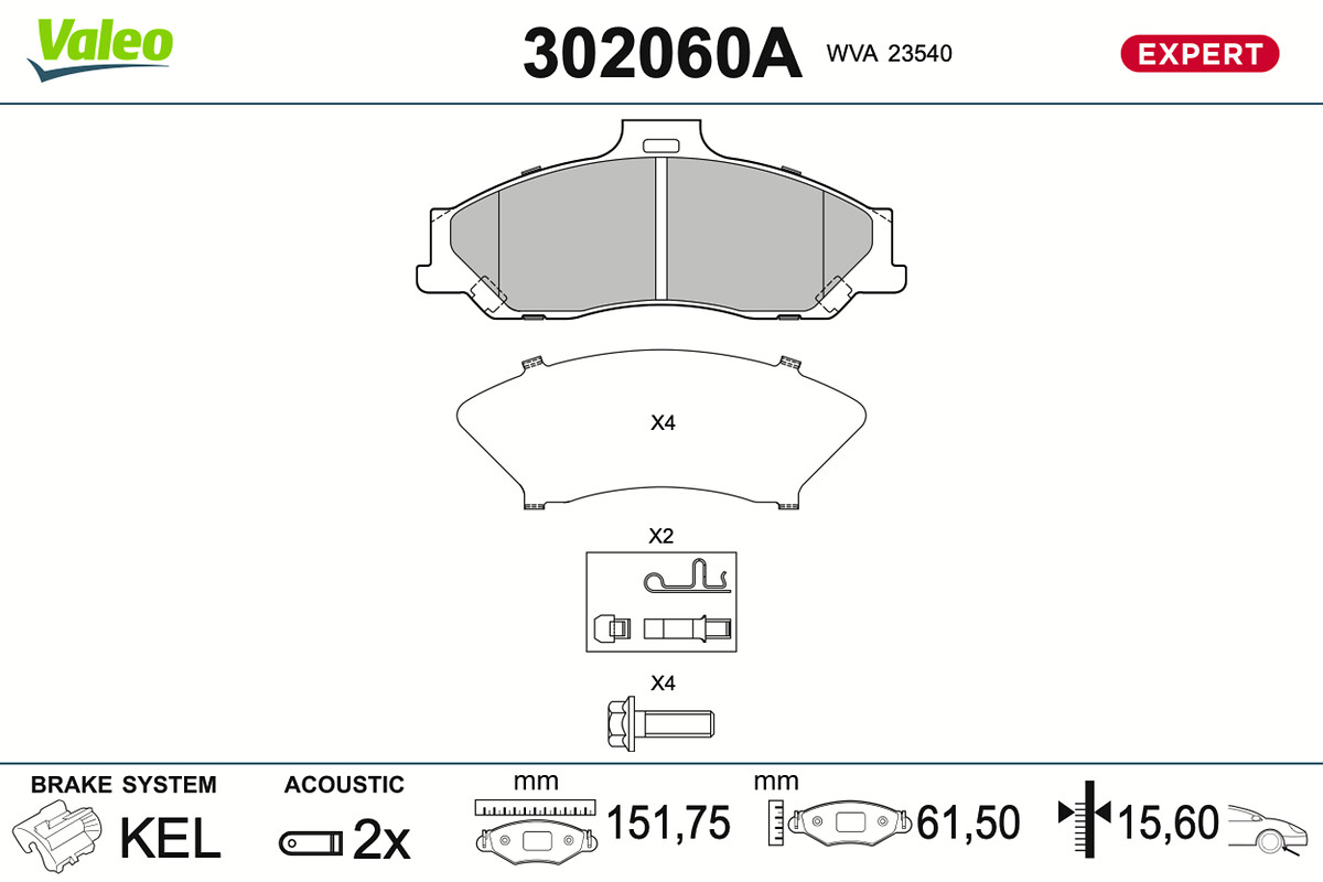 VALEO Bremsbelagsatz, Scheibenbremse 302060A vorne rechts links für FORD USA MAZDA UJY63323Z 4420002 UJY63328Z