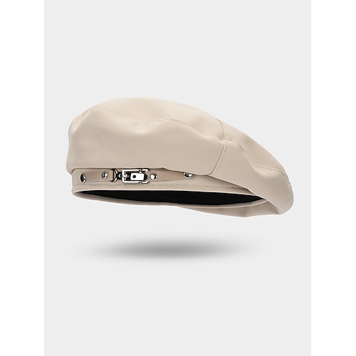 berretto da donna in poliestere – elegante berretto da pittore francese con fibbia decorativa, cappello da giornalaio casual vintage per lo streetwear autunnale e invernale