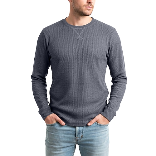 Per uomo Maglietta Waffle Maglietta Manica Lunga Girocollo Tutte le stagioni Tinta unica Tradizionale / Vintage Casual Puro All'aperto Casa Sport Outdoor Blu Nero Bianco Maglietta Top per Uomo