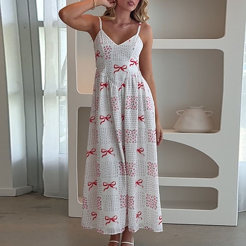 Per donna Abito maxi Vestito Estivo Abito a trapezio Abito Sottoveste Vacanza Casual Boho Spiaggia Vestibilità comoda Grafico Foglia Senza Maniche Scollo a V Spalline sottili Bianco Verde chiaro Rosa
