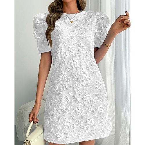 Per donna Mini Abito Abito Stampato Vintage Manica a Palloncino Quotidiano All'aperto Uscire Vestibilità regolare Floreale Manica Corta Girocollo Blu Bianco Rosa Estate Primavera