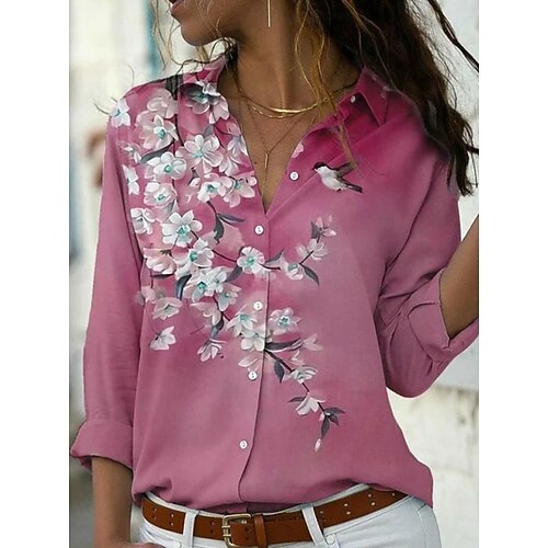 Per donna Camicia Floreale Grafico Vintage Elegante Moderno Manica Lunga Colletto a Camicia Top Regolari Quotidiano Bottoni Stampato Bianco Vino Viola Autunno Inverno