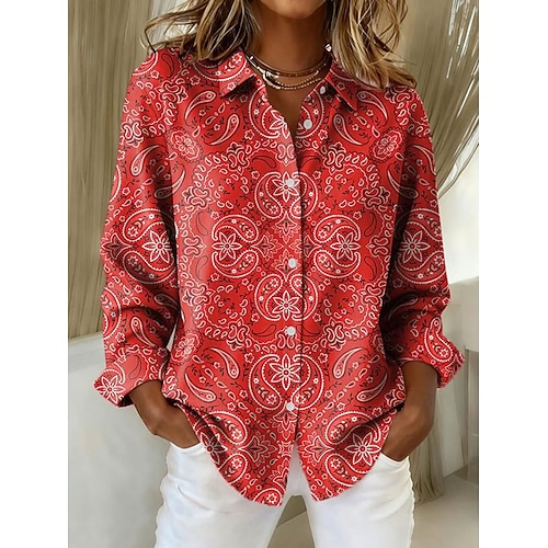 Per donna Camicia Stampa Vintage Elegante Manica Lunga Scollo a V Top Regolari Quotidiano Ferie Uscire Bottoni Stampato Nero Blu Cachi Grigio Estate