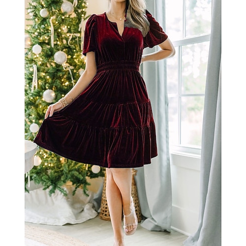 Per donna Mini Abito Abito di Natale Abito in Velluto Vestito da Festa Abito da Cocktail Moda Moderno Festa serale Feste Cocktail party Vestibilità regolare Semplice Manica Corta Scollo a V Vino