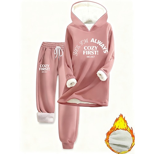 Per donna Caldo Sportivo Felpa con cappuccio Tuta da ginnastica Completi di pantaloni Jogging Pantaloni Manica lunga Con cappuccio Alfabetico A cordoncino Stampa Esterno Informale Nero Rosa Vino