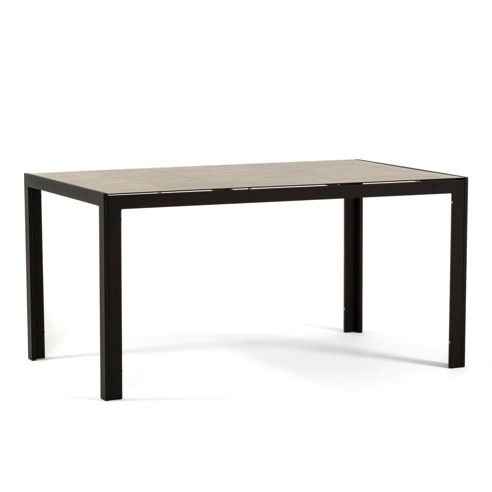 RATTATAN Rechteckiger Tisch 150x90 cm für Innen- und Außenbereich, aus Aluminium und Glas, für Küche, Esszimmer, Garten, 6 Personen–MILO–Schwarz/Stein