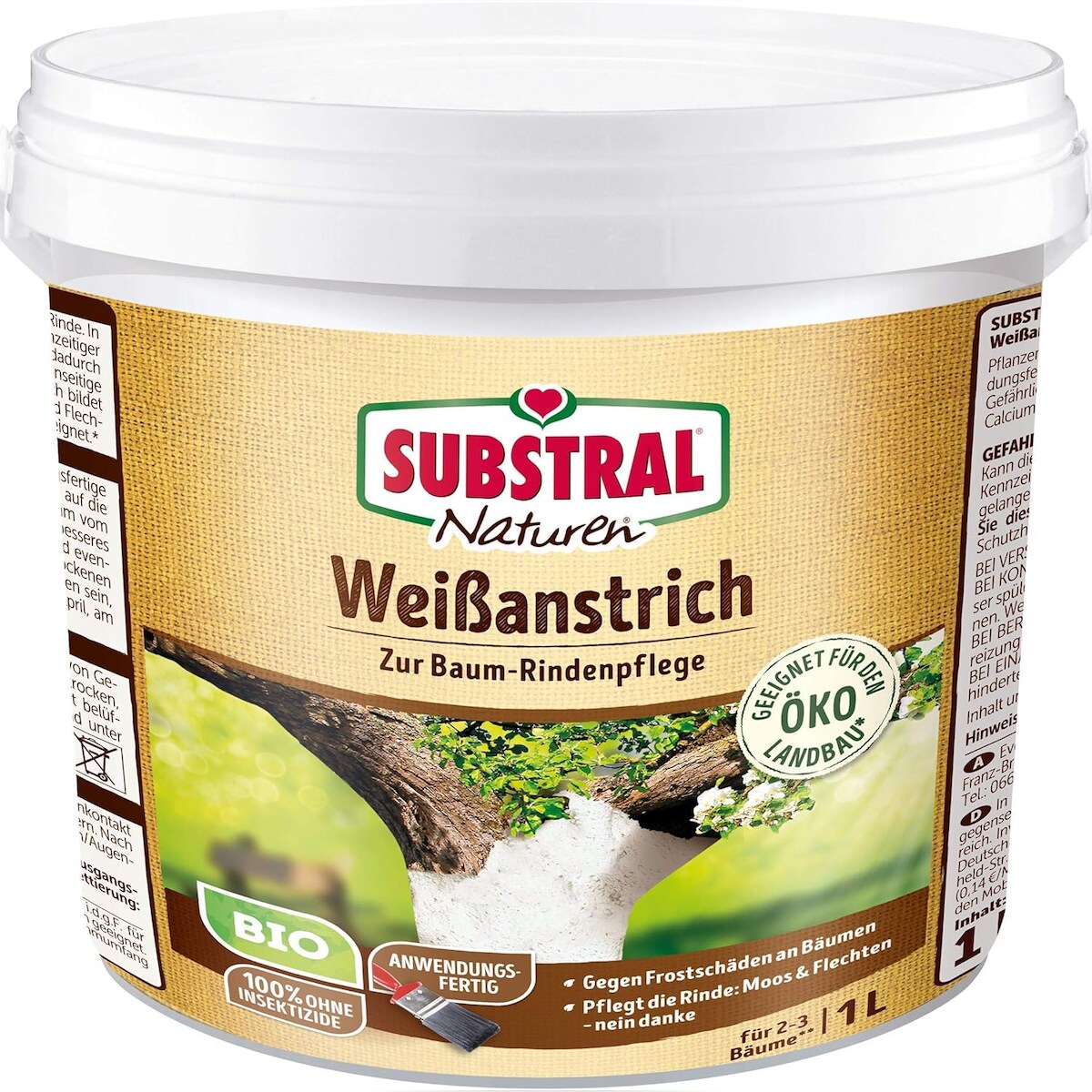 Naturen Bio Weißanstrich, 1 Liter, Baumanstrich zum Weißen von Bäumen