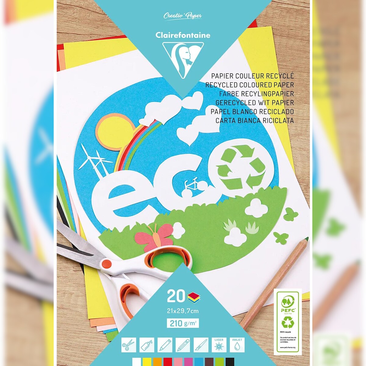 Clairefontaine 5x Farbiges Recyclingpapier, Block mit 20 Blatt A4, 210g, 10 Farben sortiert - Sortierung 26503C