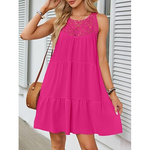 Per donna Mini Abito Vestito all'americana Vacanza Casual All'aperto Uscire Vestibilità comoda Tinta unica Senza Maniche All'americana Nero Bianco Fucsia Albicocca Estate Primavera