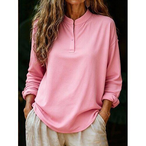 Per donna Camicia Tinta unica Quotidiano Elegante Casual Manica Lunga Collo Alto Top Regolari Quotidiano Bottoni Bianco Rosa Rosso Verde Estate Primavera Autunno