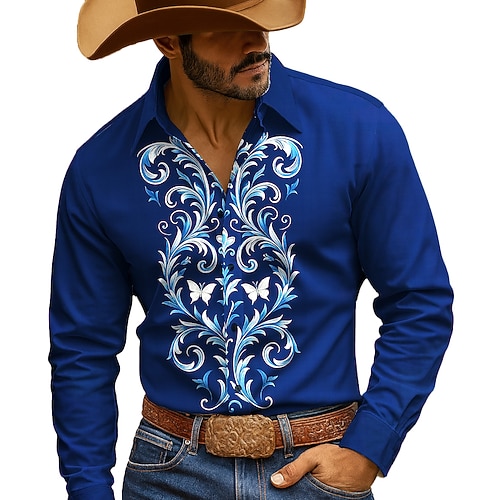 Per uomo Stampa Floreale Fiori Camicia Camicia con Bottoni Camicia da cowboy Manica Lunga Stile Western All'aperto Casuale Abbigliamento da lavoro Primavera Autunno Collo ripiegato Stampa 3D camicie
