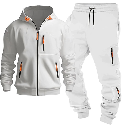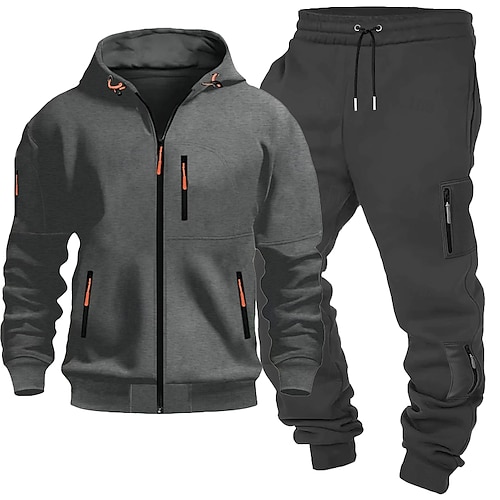 Per uomo Set coordinati Nero Felpa con Cappuccio Felpe con cappuccio Pantaloni da tuta Joggers Pantaloni Set Manica Lunga Con Cappuccio All'aperto Vacanza Tinta unica Con zip 2 Pezzi Poliestere