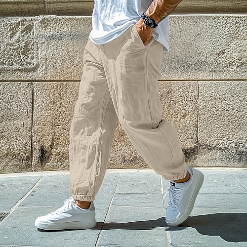 Per uomo Joggers Pantaloni di Lino Pantaloni Pantaloni Estivi Pantaloni Larghi Coulisse Polsino elastico Semplice Comodità Traspirante Lunghezza intera Quotidiano Abbigliamento casual alla moda Ferie