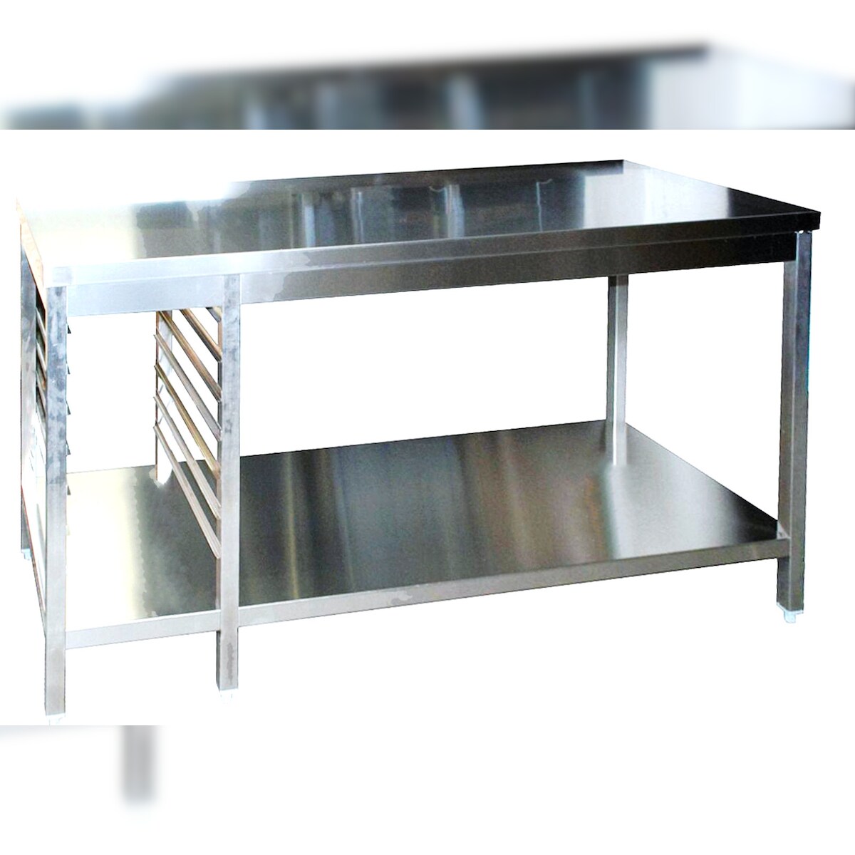 A&S Gastro Edelstahl Arbeitstisch mit Aufkantung mit GN-Winkel rechts GN1/1 verschweißt Bautiefe 800mm mit Grundboden AISI 304