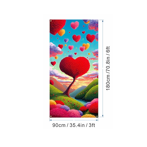 Copriporta per San Valentino, bandiera a forma di cuore per festeggiare, perfetta per oggetti di scena fotografici, decorazione festiva per le feste, ideale per creare un'atmosfera romantica per San