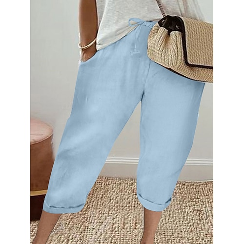 Per donna Pantaloncini ispirati al lino Chinos Moda Streetwear Essenziale Lunghezza al polpaccio Vita media Semplice Tasca Coulisse Comodità All'aperto Micro-elastico Vacanza Streetwear Quotidiano