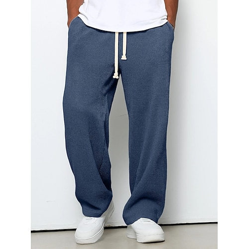 Per uomo Pantaloni della tuta a gamba dritta Pantaloni a Nido d'Ape Coulisse Griglia Traspirante Lunghezza intera Casuale Quotidiano Liscio Marrone Scuro Nero Micro-elastico