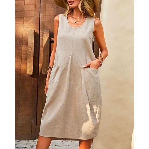 Per donna Abito Midi Vestito Casual Abito in cotone e lino Elegante Moda Moderno Quotidiano Vacanza Uscire Vestibilità comoda Semplice Senza Maniche Collo a U Albicocca Azzurro Estate Primavera