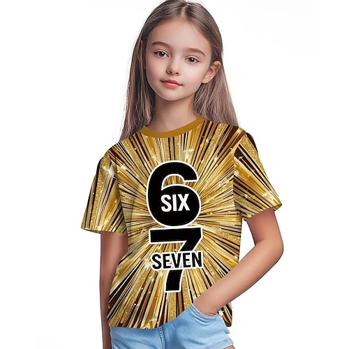 Ragazze 3D Grafico Gergo divertente 67 Maglietta Manica Corta Stampa 3D Estate Primavera Sport Moda Streetwear Bambini 4-12 Anni Girocollo All'aperto Casuale Quotidiano Vestibilità regolare