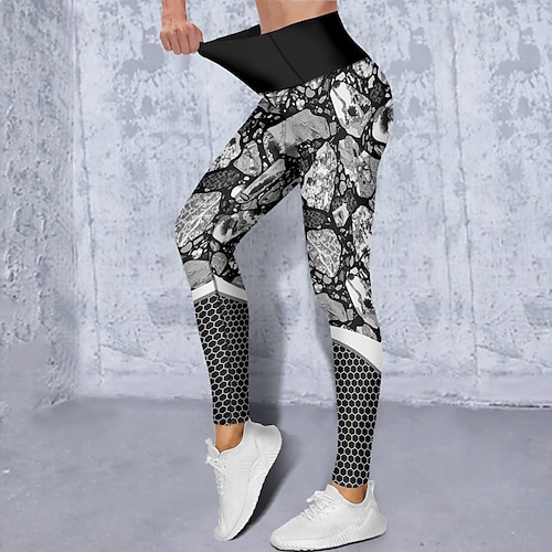 Per donna Ghette Sports Gym Leggings Pantaloni da yoga Elastene Verde Grigio Verde scuro Leggings corti Geometria Fasciante in vita Sollevamento dei glutei Abbigliamento Abbigliamento Yoga Fitness