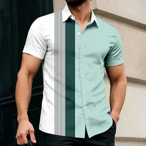 Per uomo Geometrico Blocco di colori A righe Camicia Camicia con Bottoni Camicia casual Manica Corta Moda Casual Quotidiano Vacanza Estate Primavera Collo ripiegato Stampa 3D camicie con colletto Blu