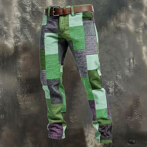 Per uomo Geometrico Blocco di colori Patchwork Pantaloni Pantaloni Eleganti Pantaloni da Abito Misura del girovita medio Casual All'aperto Vacanza Pantaloni slim fit con tasche Primavera Autunno