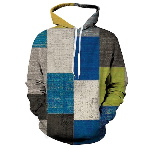 Per uomo Grafico Plaid Blocco di colori Felpa con Cappuccio Felpe con cappuccio Felpa Abbigliamento Sportivo Casual Grande e Alto Manica Lunga Con Cappuccio Casuale Quotidiano Ferie Rosso Blu Verde