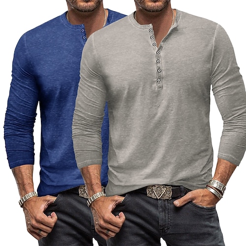 Maglietta Henley vintage da uomo, 2 pezzi, maglietta a maniche lunghe, maglietta a maniche lunghe, tinta unita, vintage, moda, basic, confezione multipla da 2 pezzi, henley, vacanza, strada, casual,