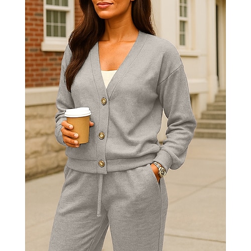Per donna Tute da ginnastica da salotto Completo cardigan lavorato a maglia Tuta da 2 pezzi Bottoni Tinta unita Completo Abbigliamento Autunno Nero Blu Spandex Escursionismo Lavoro All'aperto Manica