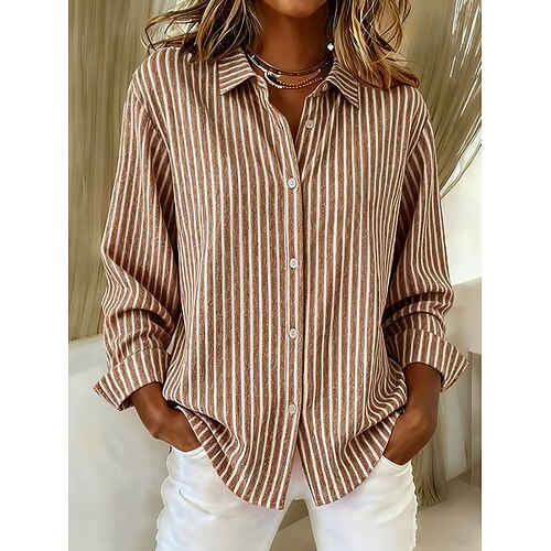 Per donna Camicia Blusa Semplice A righe Casual Manica Lunga Colletto a Camicia Top Regolari Ferie Uscire Bottoni Bianco Blu Azzurro cielo Arancione Beige Estate