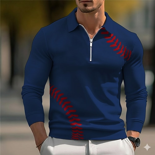 Per uomo Grafico Polo Maglia da golf Manica Lunga Magliette polo Camicie con Colletto Casual Abbigliamento da vacanza Abbigliamento da rave Abiti da festa Stampa 3D Bottoni Autunno Inverno Blu