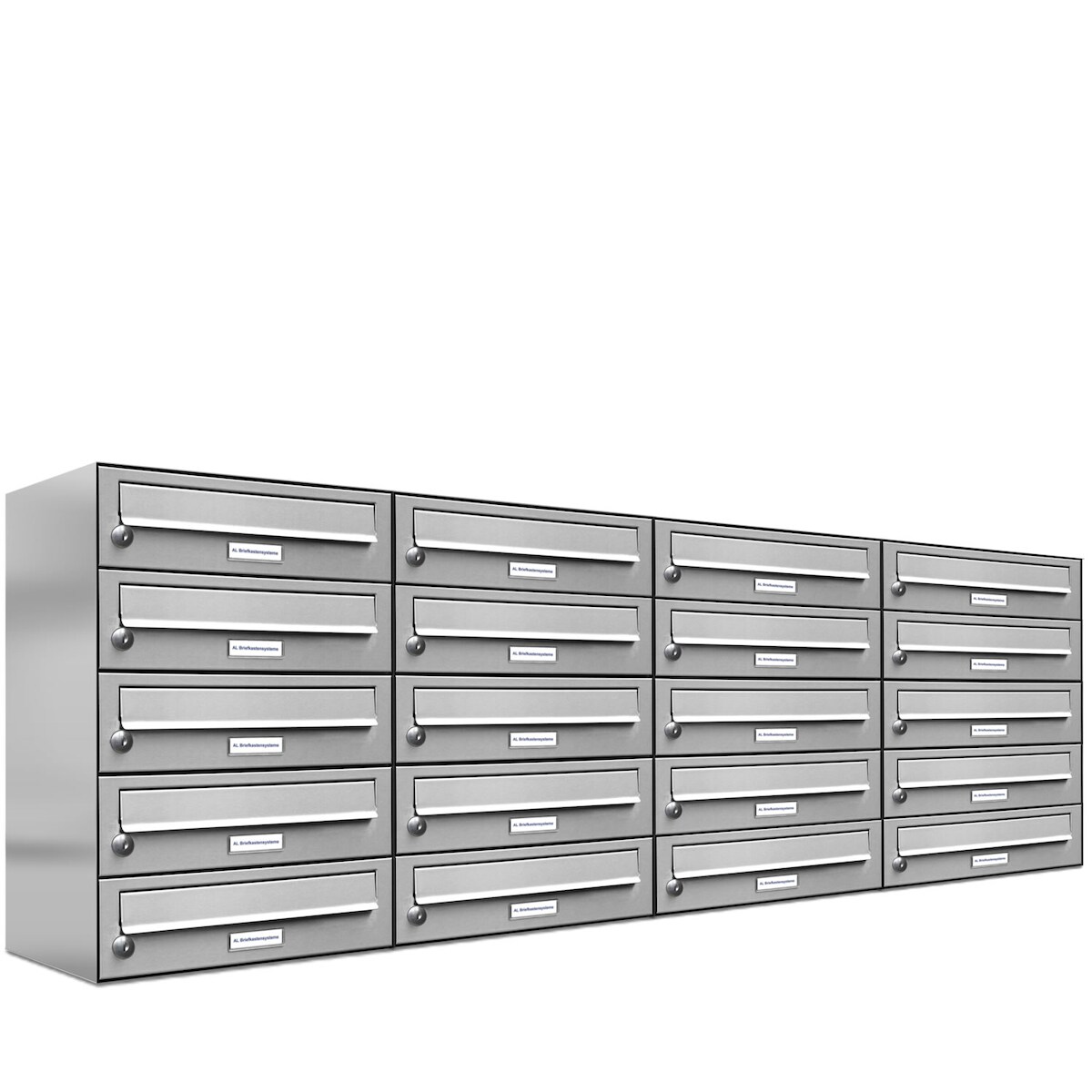 AL Briefkastensysteme 20 Fächer Premium Edelstahl Wand Briefkasten Anlage für Post A4, modern, robust und wetterfest, Artikelnummer: 132T20EA4