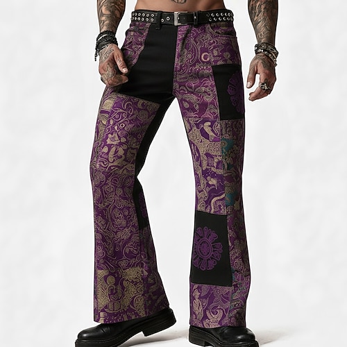 Per uomo Geometrico Blocco di colori Patchwork Pantaloni Pantaloni da discoteca Pantaloni a zampa d'elefante anni '60 e '70 Misura del girovita medio Vintage Retrò All'aperto Feste Casuale Tasche