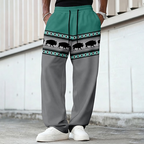 Per uomo Motivo Geometrico Toro Etnico Pantaloni da tuta Pantaloni Pantaloni casual Misura del girovita medio Casual Vintage Retrò All'aperto Caccia Allenamento Coulisse elastica in vita Pantaloni a