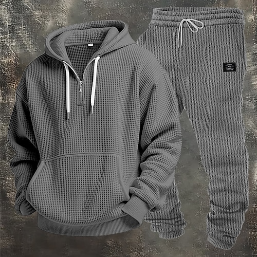 Per uomo Set coordinati Blu Felpa con Cappuccio Pantaloni da tuta Joggers Pantaloni Set Manica Lunga Con Cappuccio All'aperto Vacanza Semplice Tasca 2 Pezzi Poliestere Primavera