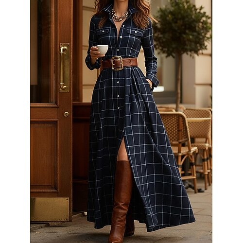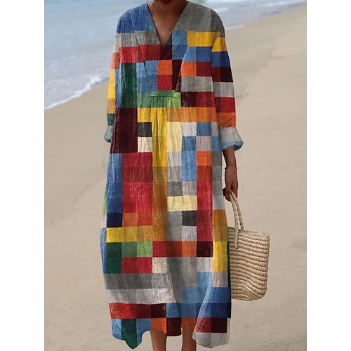 Per donna Abito maxi Vestito Estivo Abito a Tubino Vacanza Casual Spiaggia Uscire Vestibilità comoda Grafico Geometrico Astratto Manica Lunga Scollo a V Giallo Arancione Blu scuro Estate Primavera