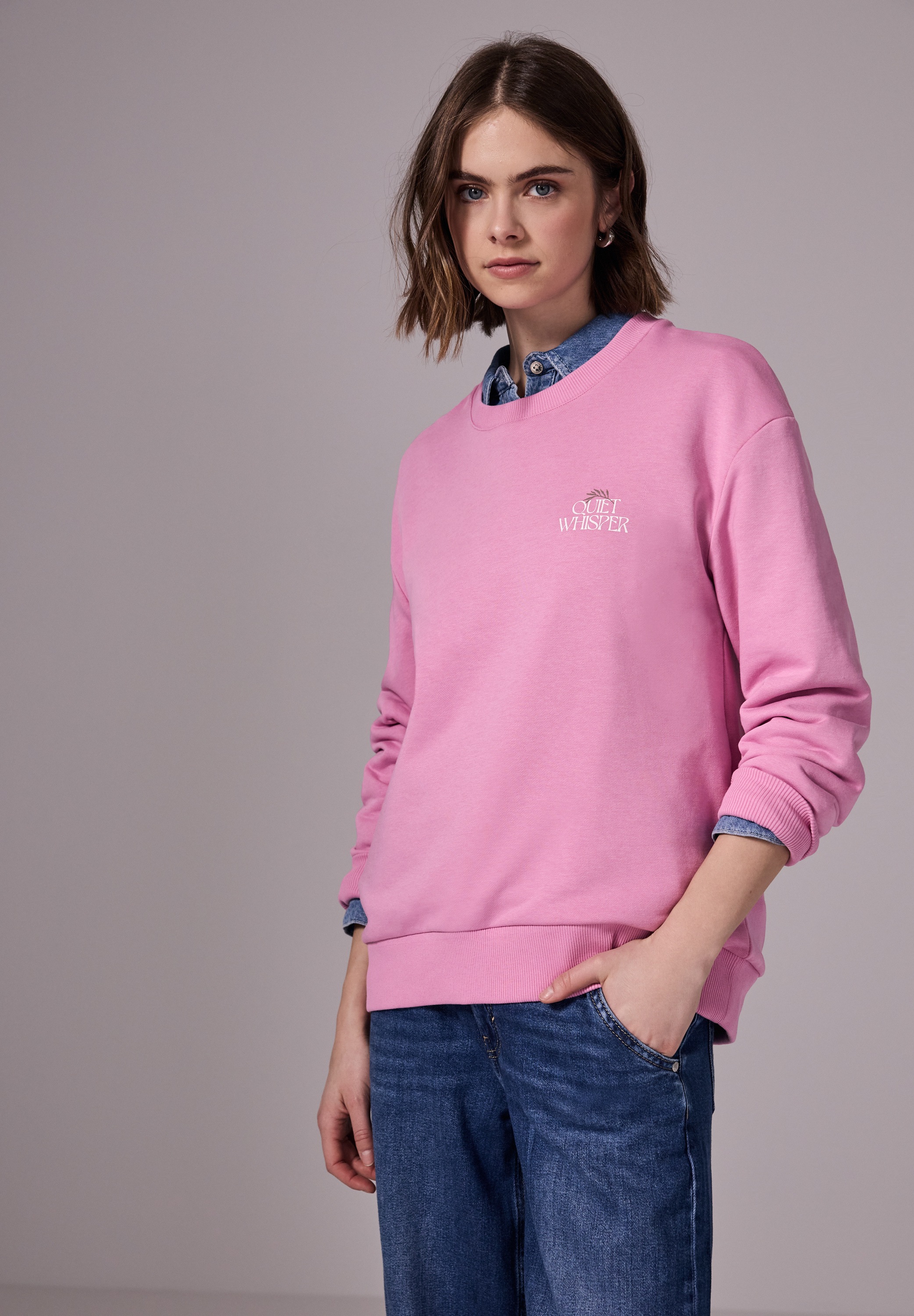 Sweatshirt STREET ONE STUDIO, Damen, Gr. 46, intense rose, Sweatware, 65% Baumwolle, 35% Polyester, unifarben, casual, loose fit, Rundhals, Langarm Bündchen, Sweatshirts