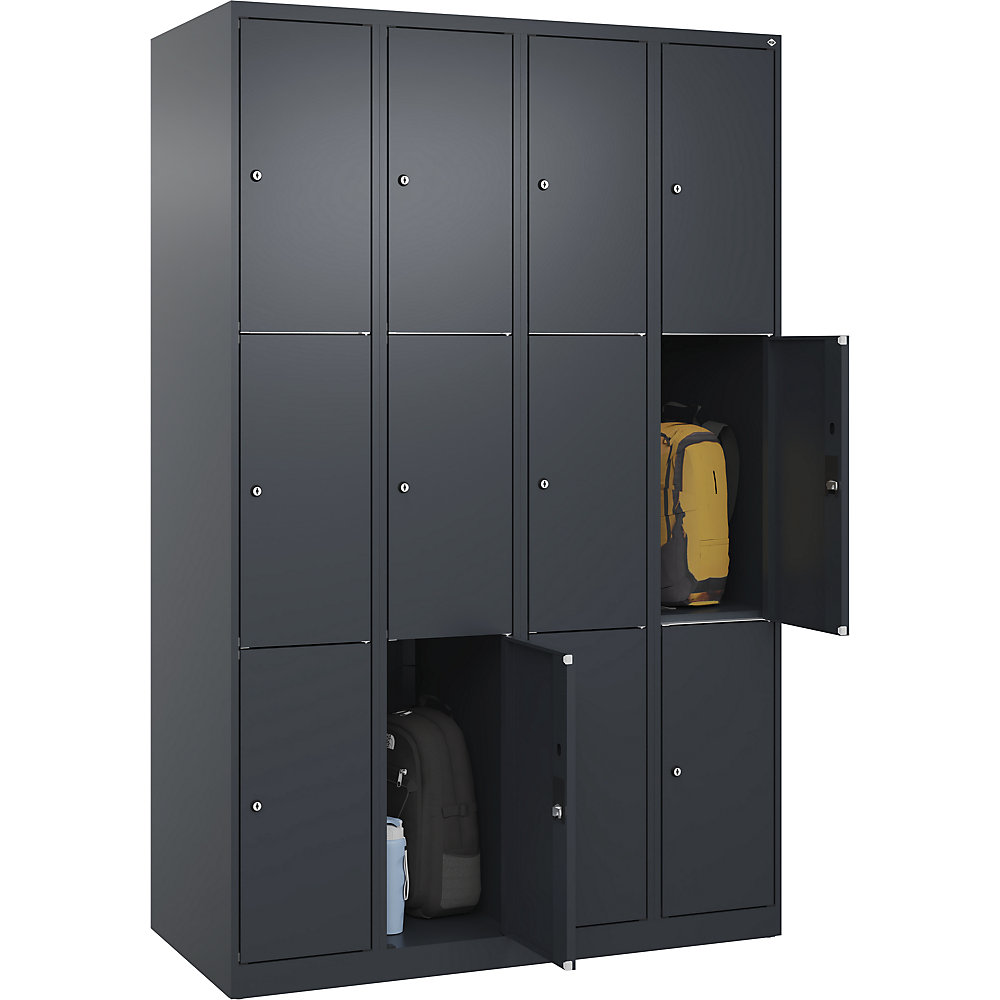 Putzmittelspind Classic PLUS, 1 Abteil, Trennwand mittig, lichtgrau / fernblau, B 600 mm, mit Füßen, Drehriegel C+P