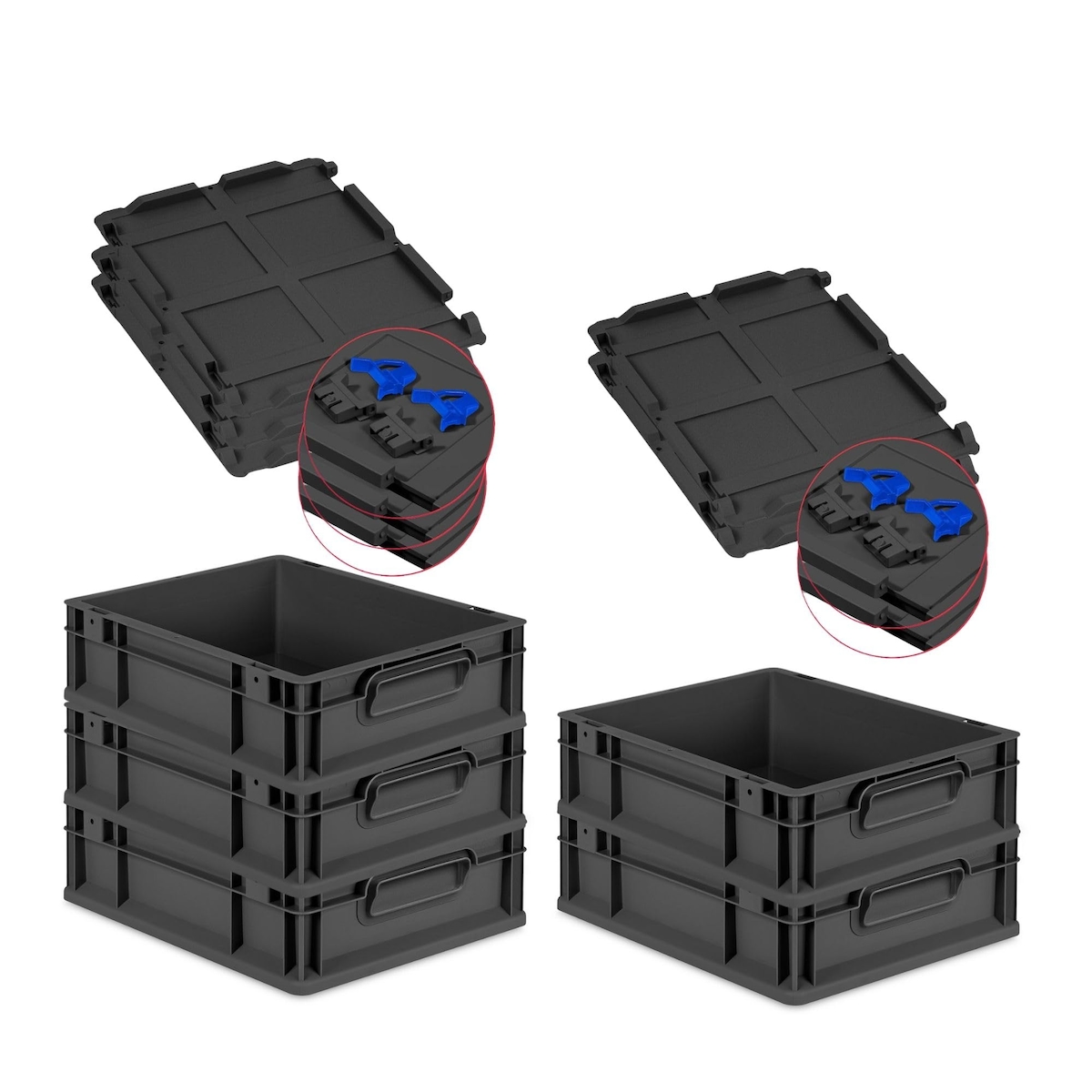 PROREGAL SuperSparSet 5x Eurobox NextGen Grip mit Scharnierdeckel & blauen Verschlüssen, HxBxT 12x30x40cm, 11L, Schwarz, Griffe zu, Eurobehälter